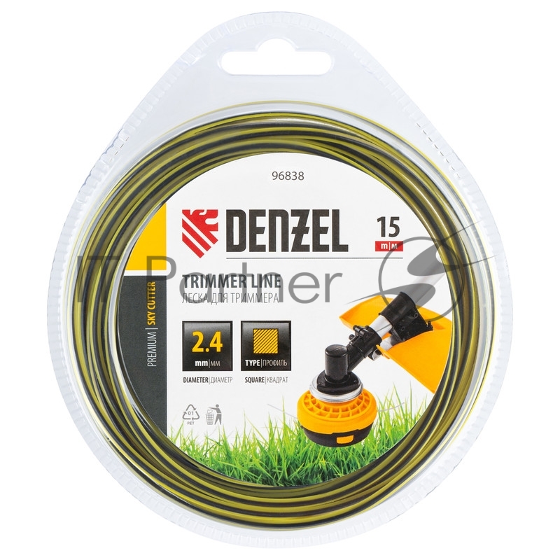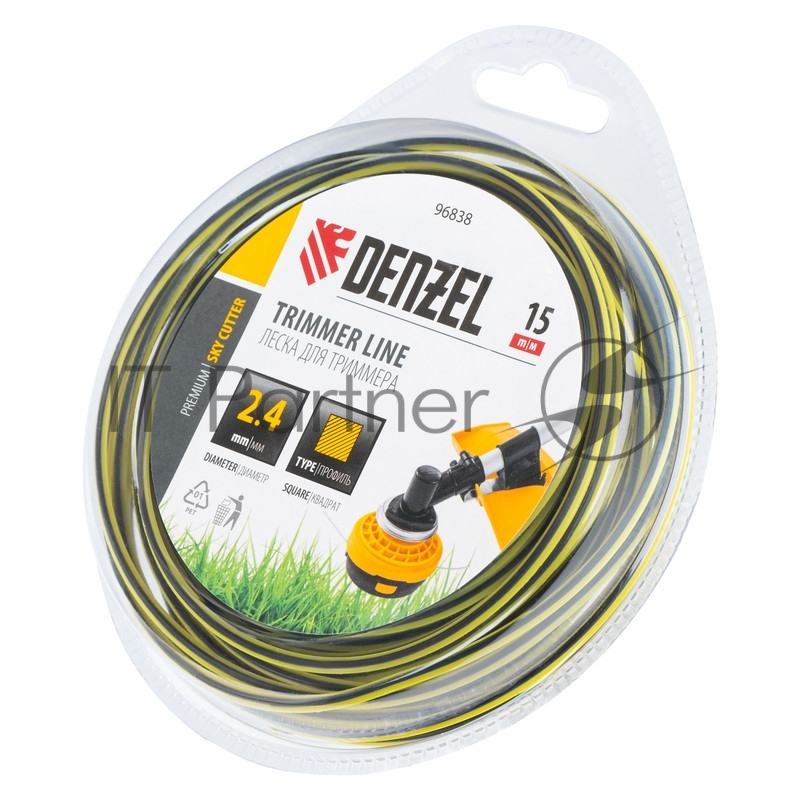 Леска для триммера двухкомпонентная квадратная, 2,4мм х 15м, блистер SkyCutter// Denzel