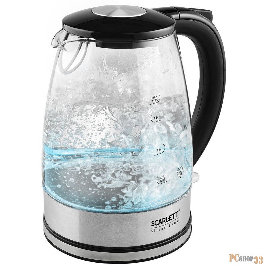 Чайник электрический Scarlett SC-EK27G95 1.7л. 2200Вт серебристый/черный (корпус: стекло)