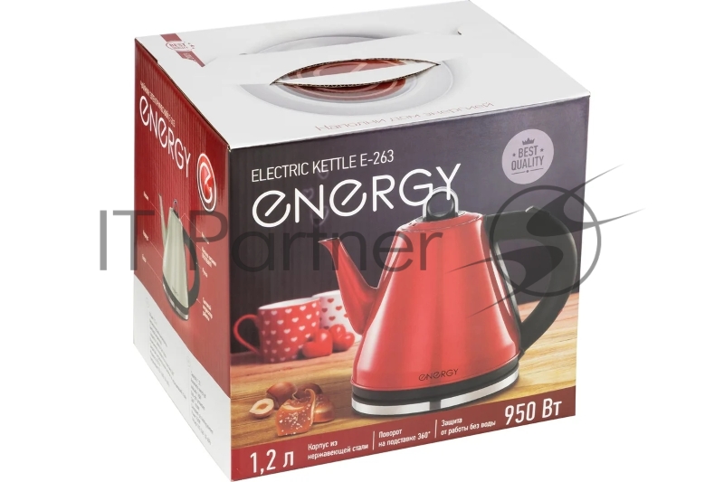 Чайник электрический ENERGY E-263 1,2л, нержавейка, красный (12)