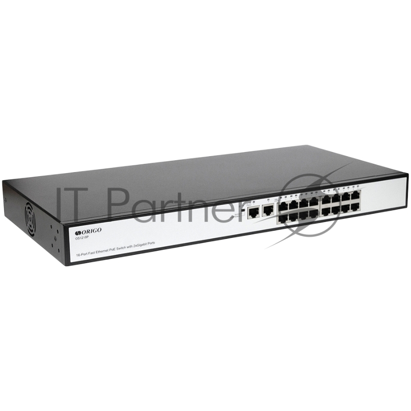 Неуправляемый PoE-коммутатор ORIGO OS1218P/190W/A1A 16x100Base-TX PoE+, 2x1000Base-T, PoE-бюджет 190 Вт, корпус металл