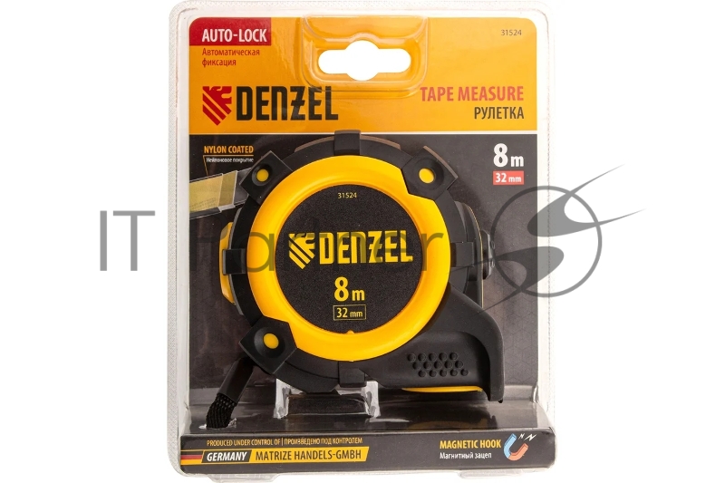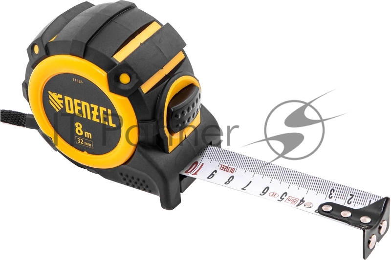 Рулетка 8м х 32мм, автоматич. фиксац., нейлон. покрытие, магнит. зацеп, двухстор. разметка// Denzel