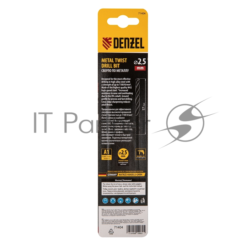 Сверло по металлу, 2,5 мм, HSS Co-8%, 2 шт.// Denzel