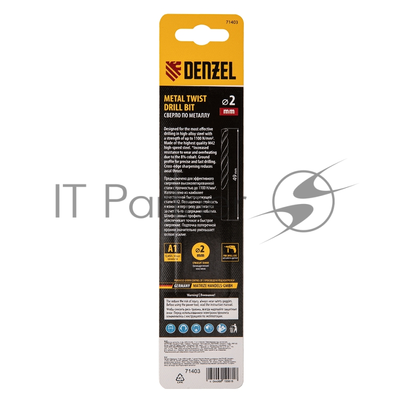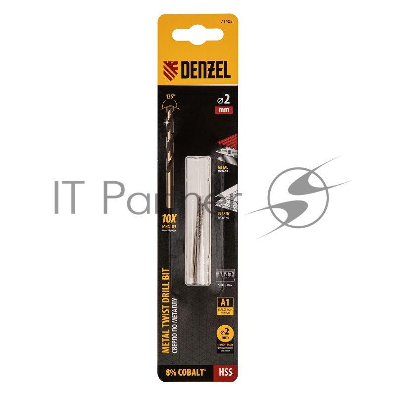Сверло по металлу, 2 мм, HSS Co-8%, 2 шт.// Denzel