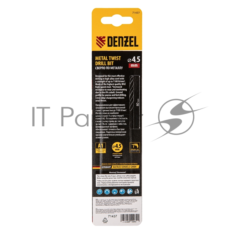 Сверло по металлу, 4,5 мм, HSS Co-8%// Denzel
