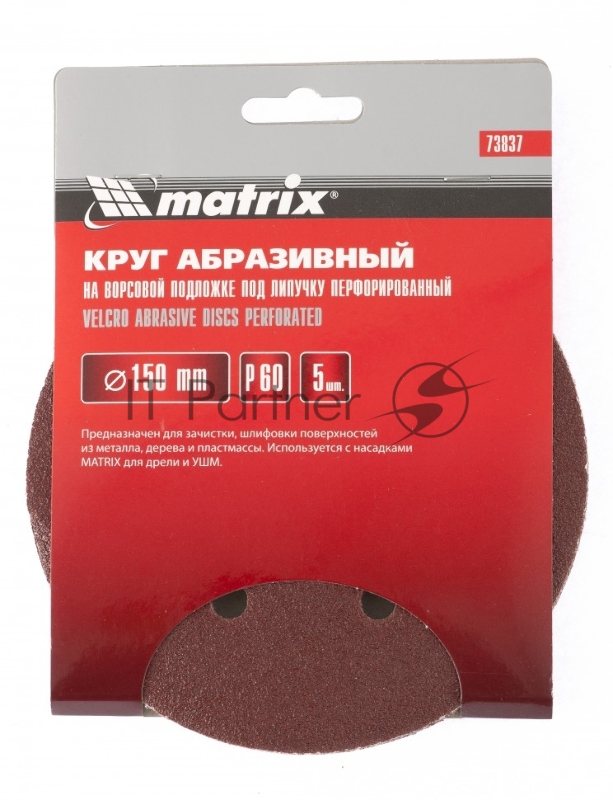 Круг абразивный на ворсовой подложке под липучку, перфорированный, P 240, 150 мм, 5 шт.// Matrix