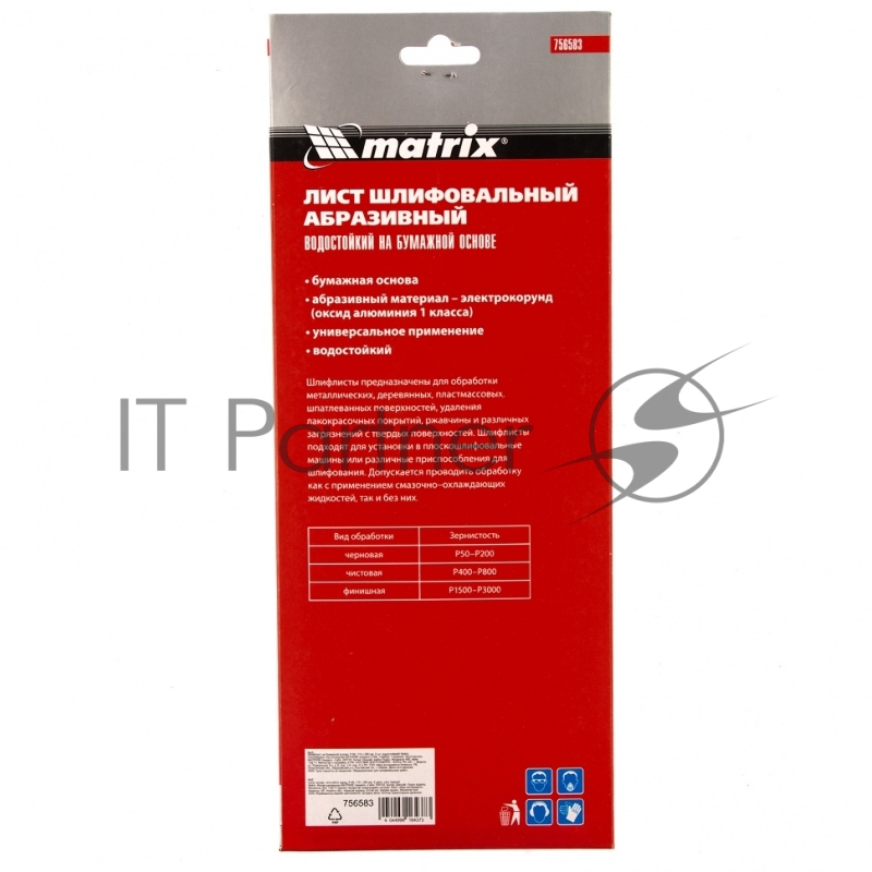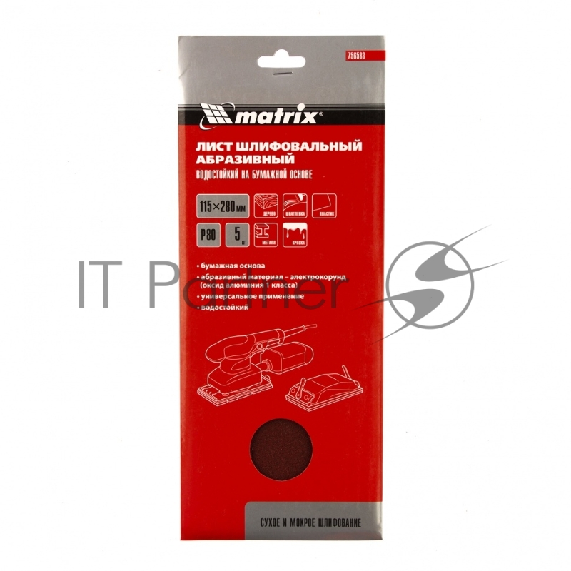 Шлифлист на бумажной основе, P 80, 115 х 280 мм, 5 шт, водостойкий// Matrix