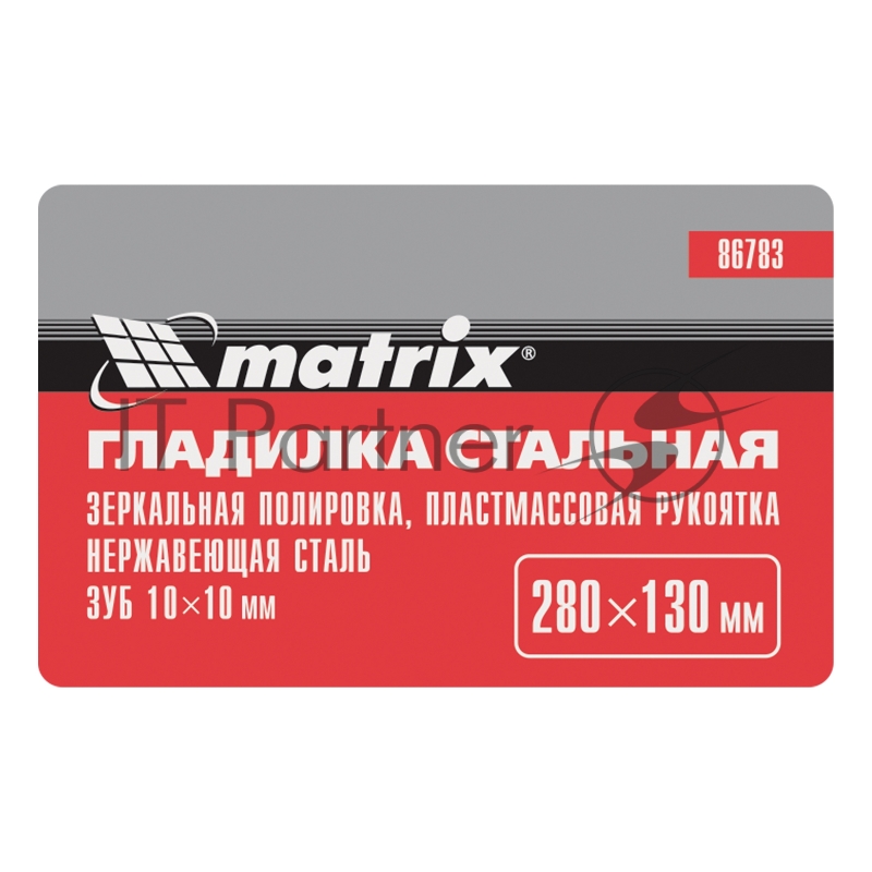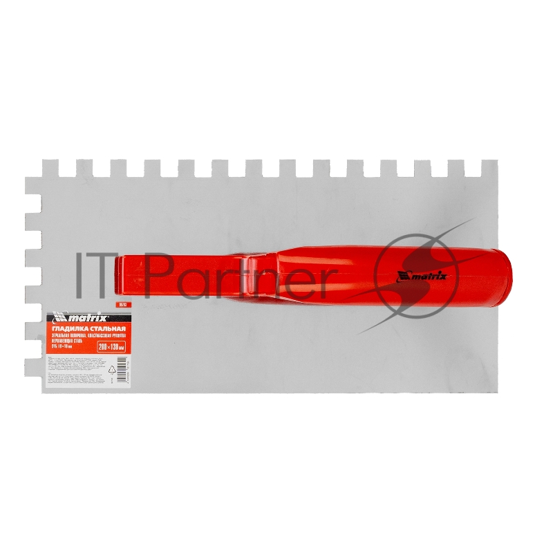 Гладилка из нерж.стали, 280 х 130 мм, зеркальная полировка, пластмас. ручка, зуб 10 х 10 мм// Matrix