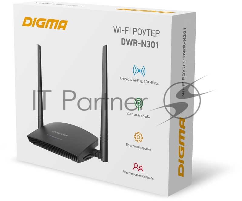 Роутер беспроводной Digma DWR-N301 N300 10/100BASE-TX черный (упак.:1шт)