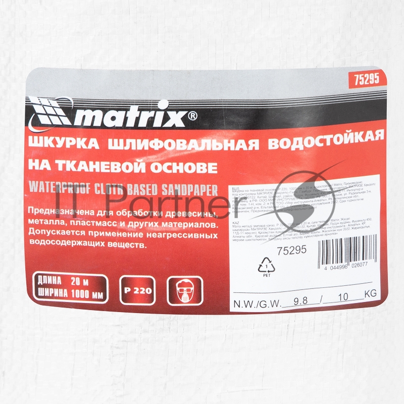 Шкурка на тканевой основе, P 220, 1000 мм х 20 м, водостойкая// Matrix