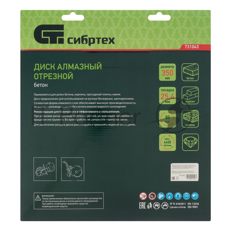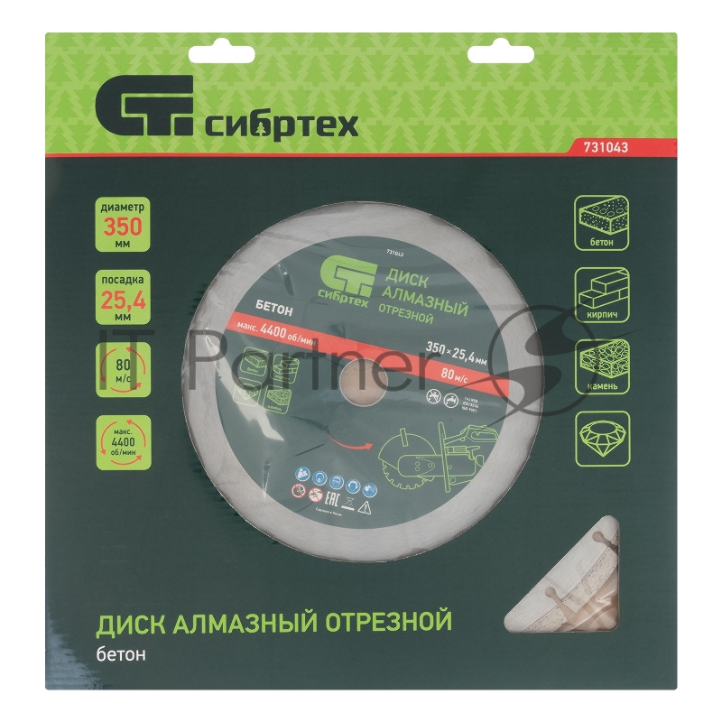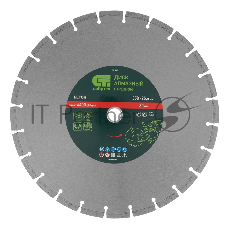 Диск алмазный ф350 х 25,4 мм, Бетон,сухой/мокрый рез// Сибртех