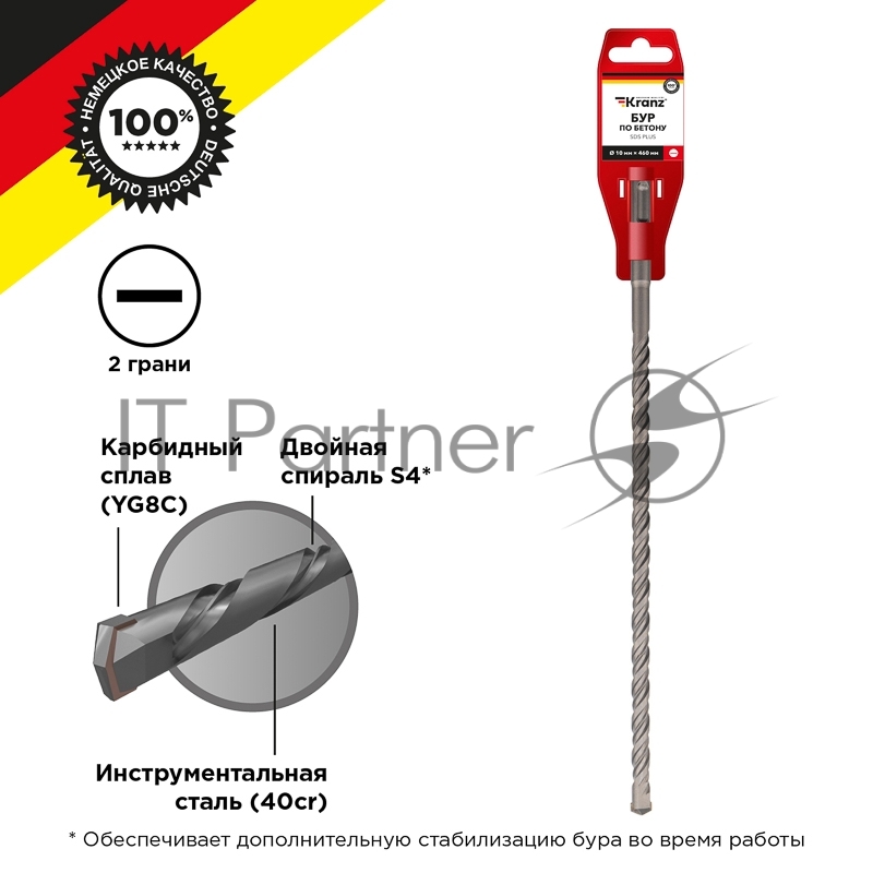 Бур по бетону 10x460x400 мм SDS PLUS Kranz