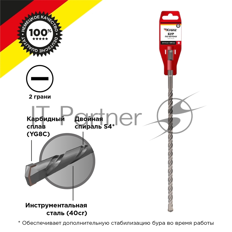 Бур по бетону 14x600x540 мм SDS PLUS Kranz