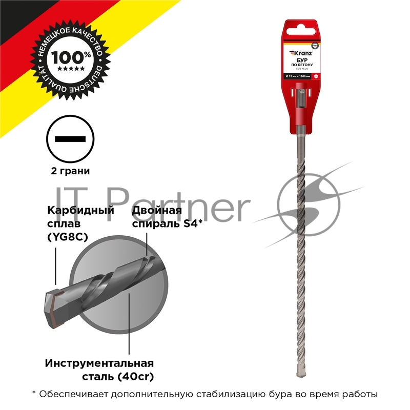 Бур по бетону 12x1000x940 мм SDS PLUS Kranz