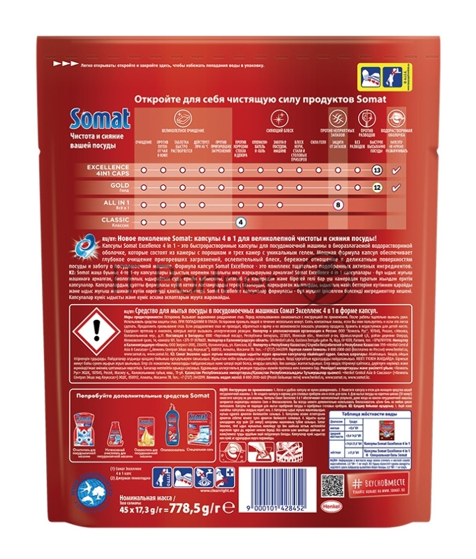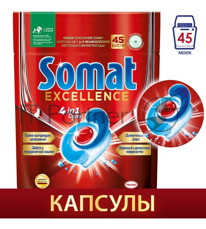 Капсулы Somat Excellence 4в1 (упак.:45шт) (2 711 623) для посудомоечных машин