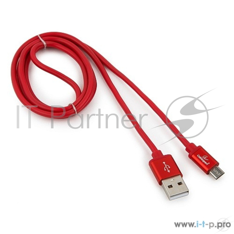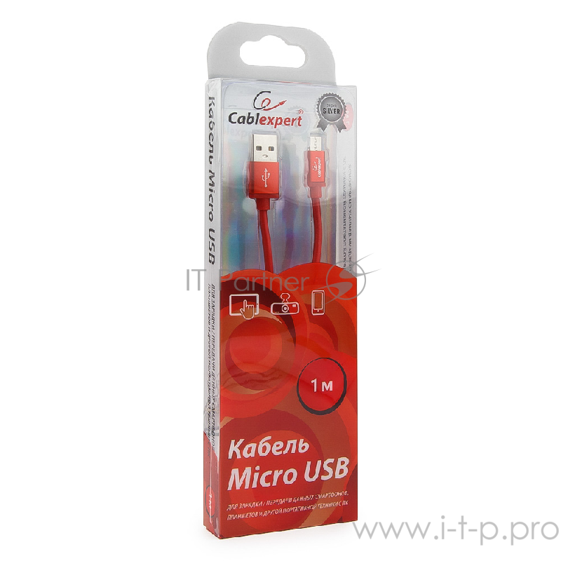 Кабель Cablexpert Кабель USB 2.0 CC-S-mUSB01R-1M, AM/microB, серия Silver, длина 1м, красный, блистер