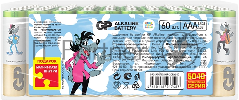 Батарея GP Super Alkaline 24A50/10SMF-2CRVS60 AAA (промо:50+10) (60шт) спайка