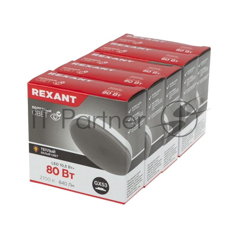 Лампа светодиодная GX53 таблетка 10,5Вт 840Лм AC180~265В 2700К (5 шт/уп) REXANT