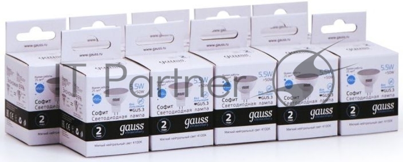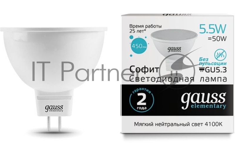 Лампа светодиодная Gauss Elementary MR16 5.5Вт цок.:GU5.3 спот 220B 4100K св.свеч.бел.ней. (упак.:10шт) (13526)
