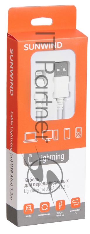 Кабель SunWind USB (m)-Lightning (m) 1.2м белый блистер