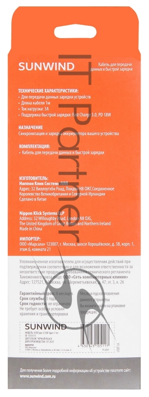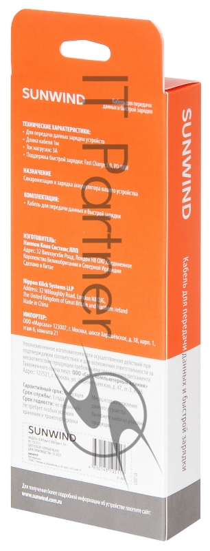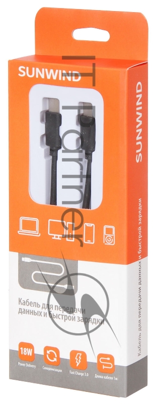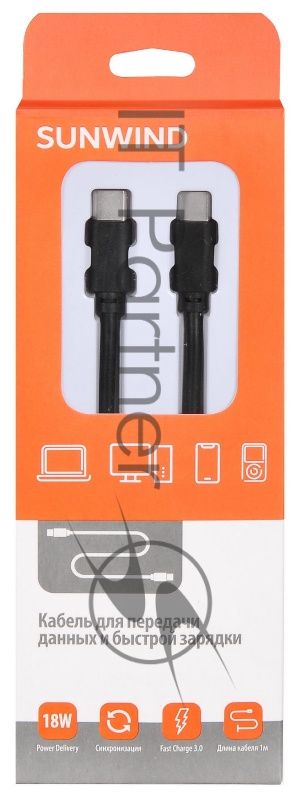 Кабель SunWind USB Type-C (m)-USB Type-C (m) 1м черный блистер