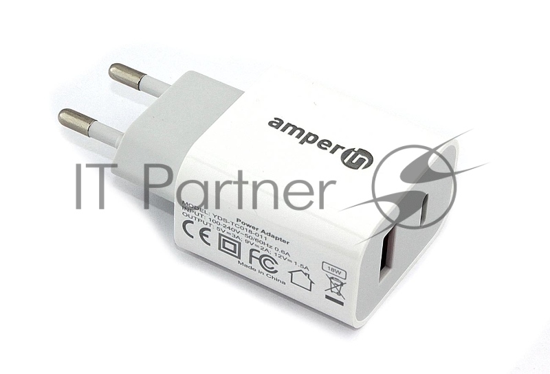 Блок питания (сетевой адаптер) Amperin Quick Charge 2-Port QC 3.0 USB+Type-C USB 18W (YDS-TC018-011)