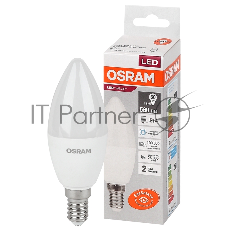 Лампа светодиодная LED Value LVCLB60 7SW/865 свеча матовая E14 230В 10х1 RU OSRAM 4058075579033