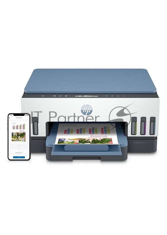 МФУ струйный HP Smart Tank 725 All-in-One (28B51A), A4, цветной, печ. 15 стр/мин. (ч/б) 9 стр/мин. (цвет), 1200x1200 dpi, Bluetooth, USB Type-A, Wi-Fi