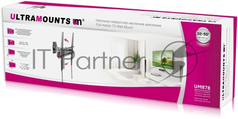 Кронштейн для телевизора Ultramounts UM 878 черный 32-55 макс.35кг настенный поворотно-выдвижной и