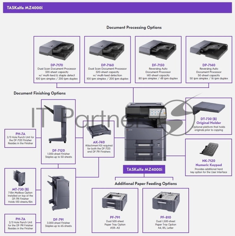 Kyocera TASKalfa MZ4000i (1102ZS3NL0) {ч/б лазерный, A3, 40/21(A4/A3) стр/мин, 1200x1200 dpi, 2 Гб+32 Гб SSD, USB 2.0, Network, HyPAS, лоток 2*500 л., Duplex, без крышки/ тонера}