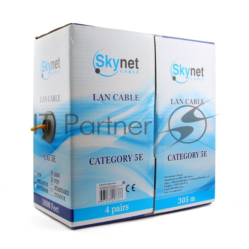 Кабель SkyNet Premium FTPнг-LSZH 4x2x0,51, низкое дымовыделение, нулевое содержание галогенов, медны