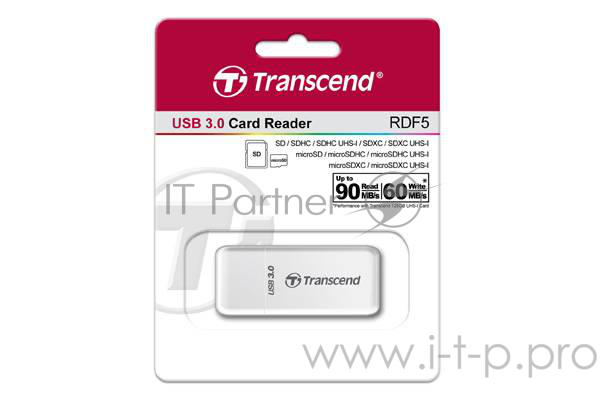 Картридер SDXC/microSDXC Transcend TS-RDF5W, внешн., белый (USB3.0)