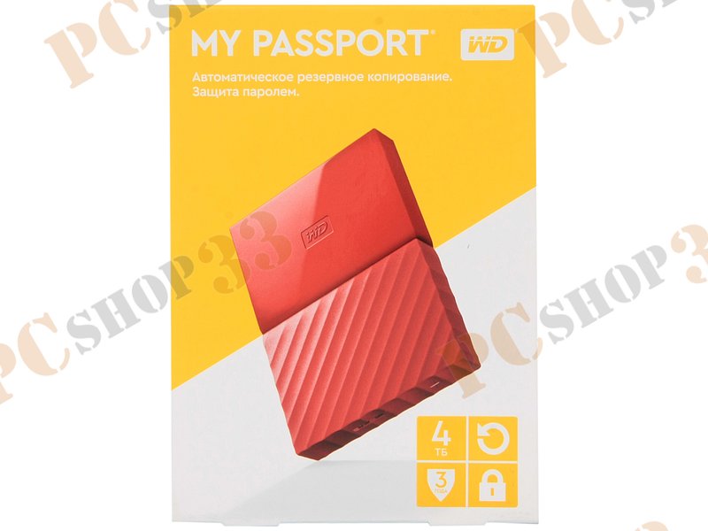 Внешний жесткий диск 4000ГБ 2.5 Western Digital My Passport WDBUAX0040BRD, красный (USB3.0)