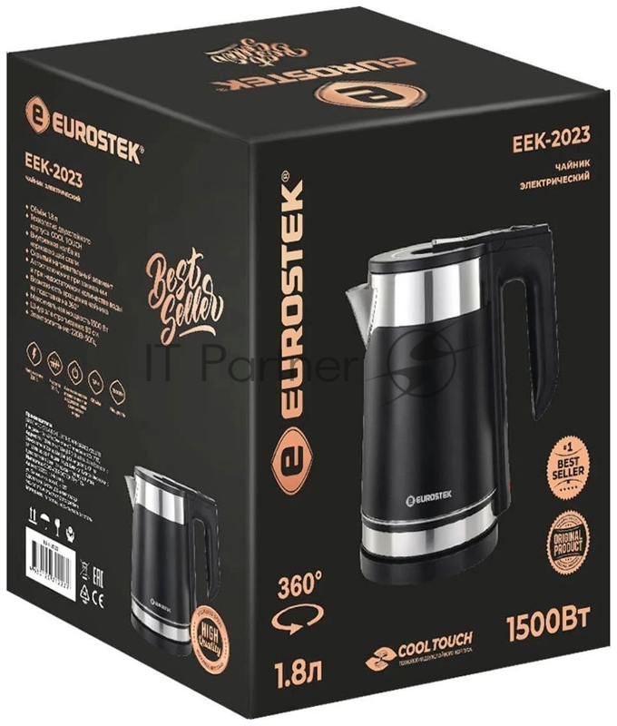 Чайник EUROSTEK EEK-2023, 1,8 л, технология двухслойного корпуса COOL TOUCH