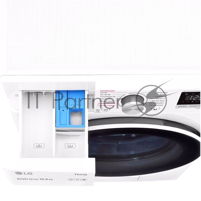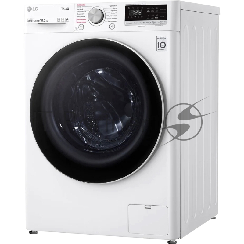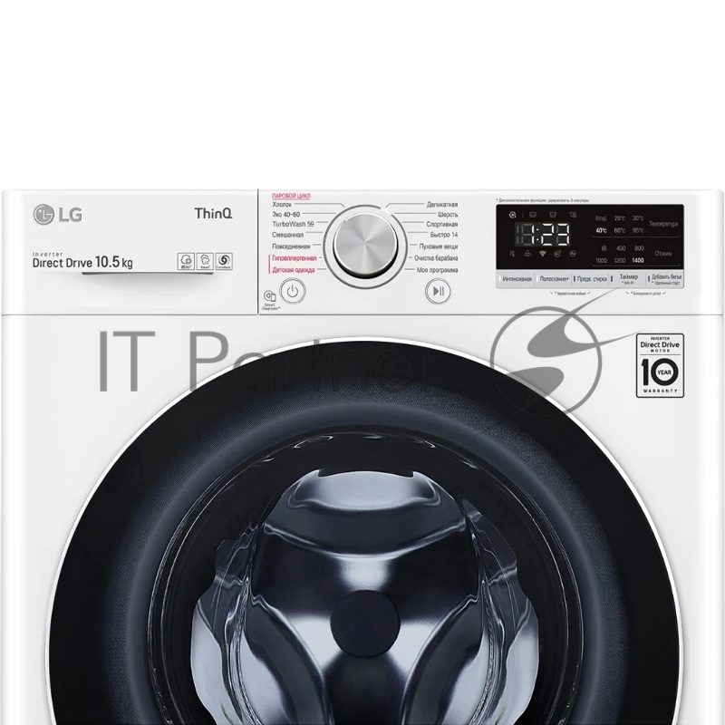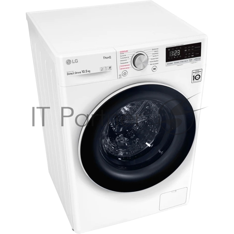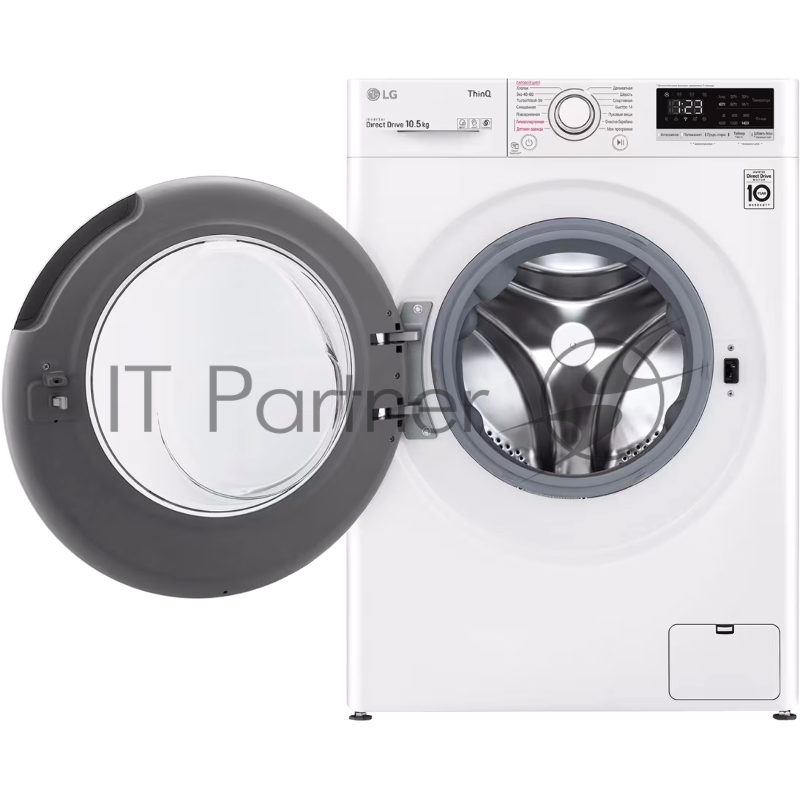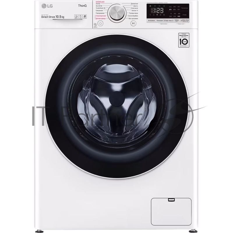 Стиральная машина LG Electronics/ Полноразмерная стиральная машина с технологией AI DD, 85x60x56, загрузка фронтальная, 10.5кг, до 1400 об/мин при отжиме, функция пара, дисплей, цвет: белый, люк черный, панель на русском языке