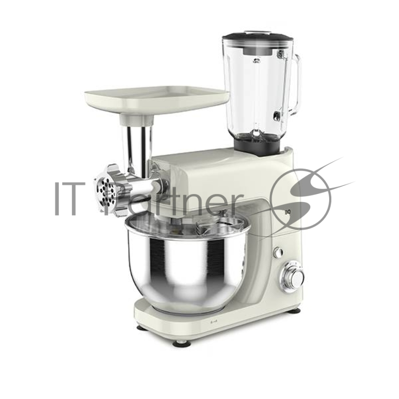 Планетарный миксер BQ MX620 Ivory. Максимальная мощность 1600 Вт / Чаша из нержавеющей стали 5 л / 6 скоростей + импульсный режим / Насадки в комплекте: для смешивания, для замешивания теста, для взбивания / Дополнительные насадки в комплекте: мясору