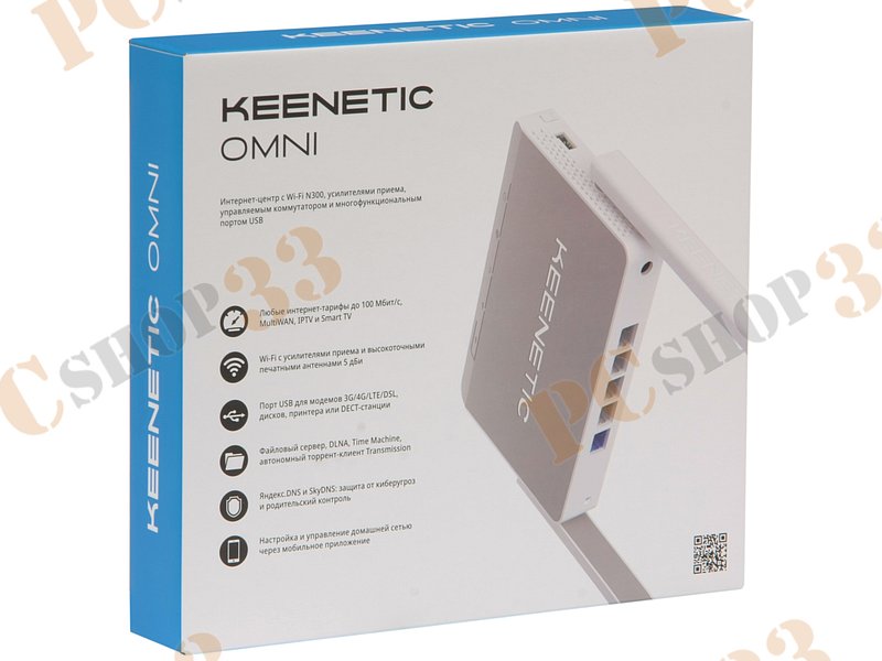 Беспроводной маршрутизатор KEENETIC OMNI WiFi 300Мбит/сек. + 4 порта LAN 100Мбит/сек. + 1 порт WAN 100Мбит/сек. + 1 порт USB2.0