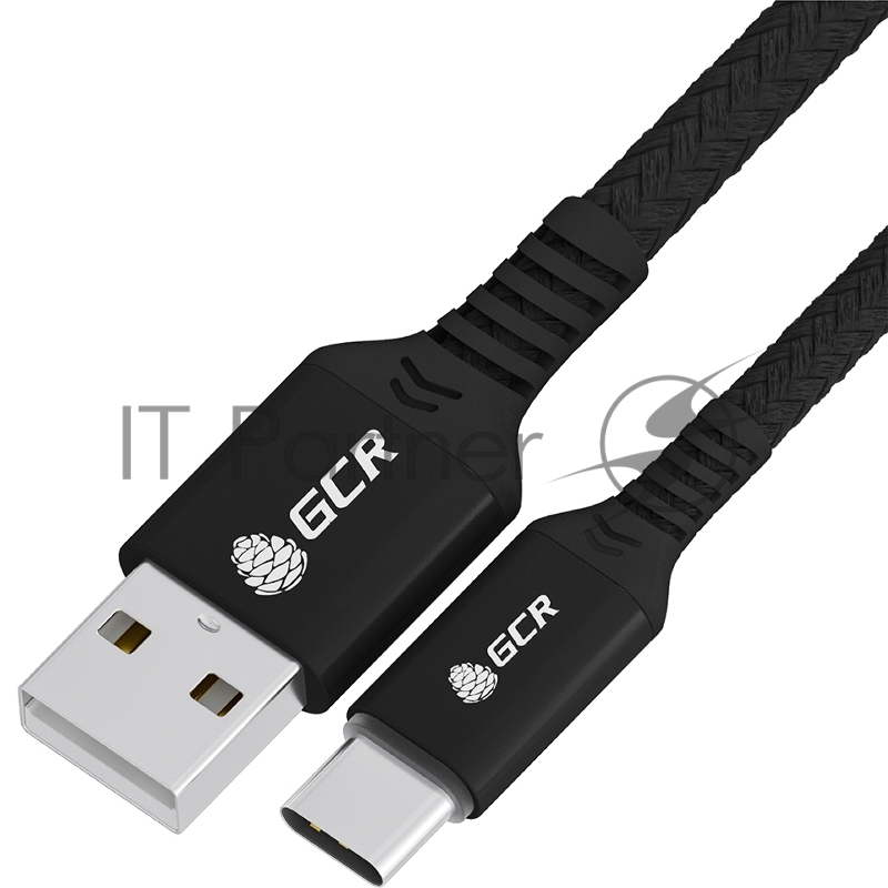 Кабель GCR QC 1.0m, TypeC, быстрая зарядка, черный нейлон, AL case черный, черный ПВХ, 28/24 AWG