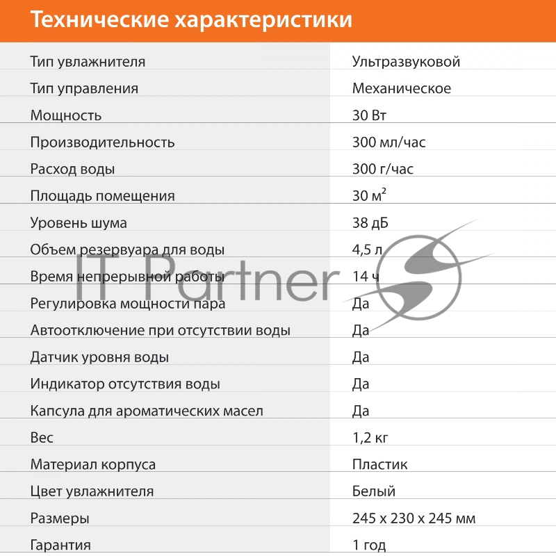 Увлажнитель воздуха SunWind SUH8410W 30Вт (ультразвуковой) белый