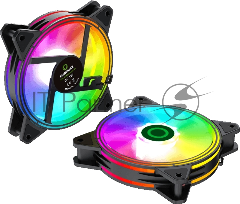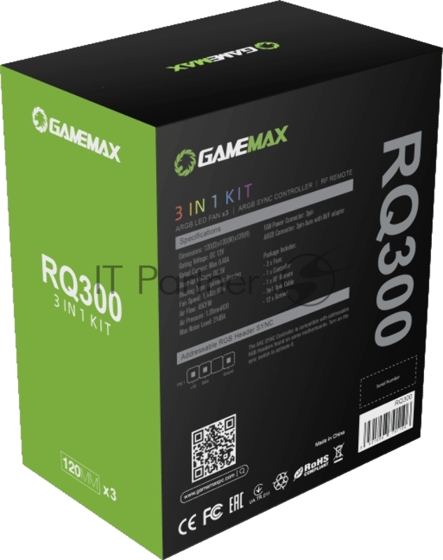Комплект кулеров для корпуса ПК + контроллер вентиляторов/ Gamemax RQ300 kit, 3x12CM Rainbow ARGB fans, remote controller