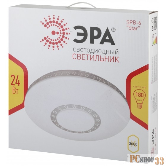 ЭРА Светильники светодиодные бытовые ЭРА Б0029619 SPB-6-24-3К "Star" Светильник светодиодный декоративный 24Вт, 3000К, 1920 Лм, "Star", 380*85 мм