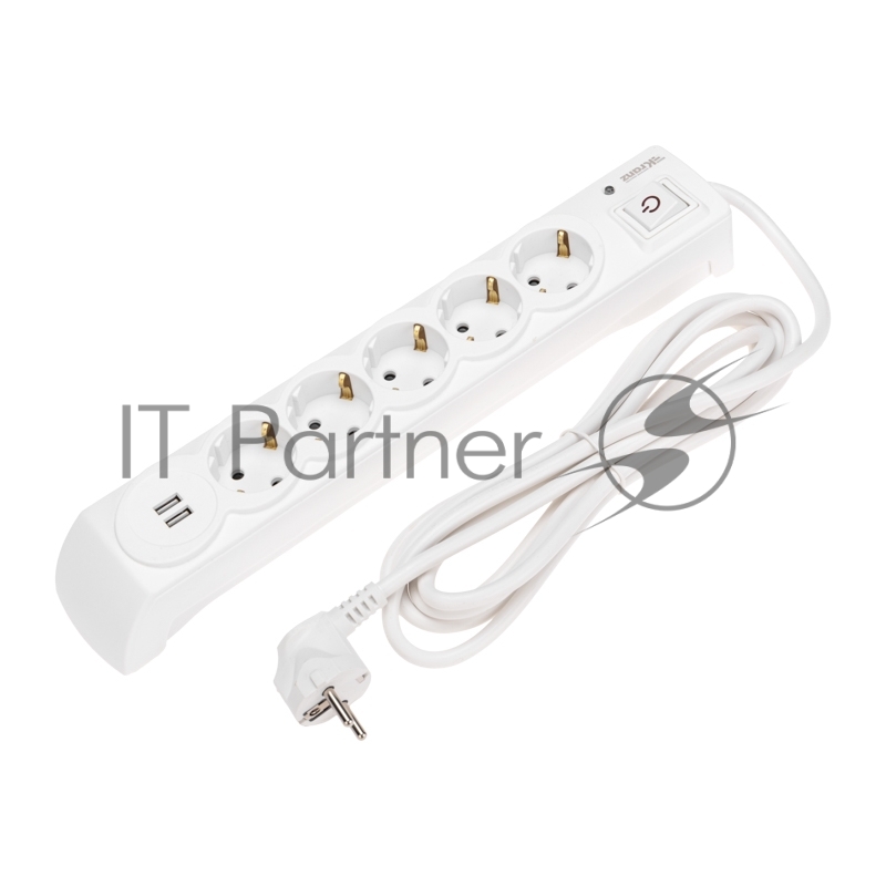 Фильтр сетевой 5 гнезд, 3м, 3х1,5мм², с автовыкл, 2 USB, белый KRANZ