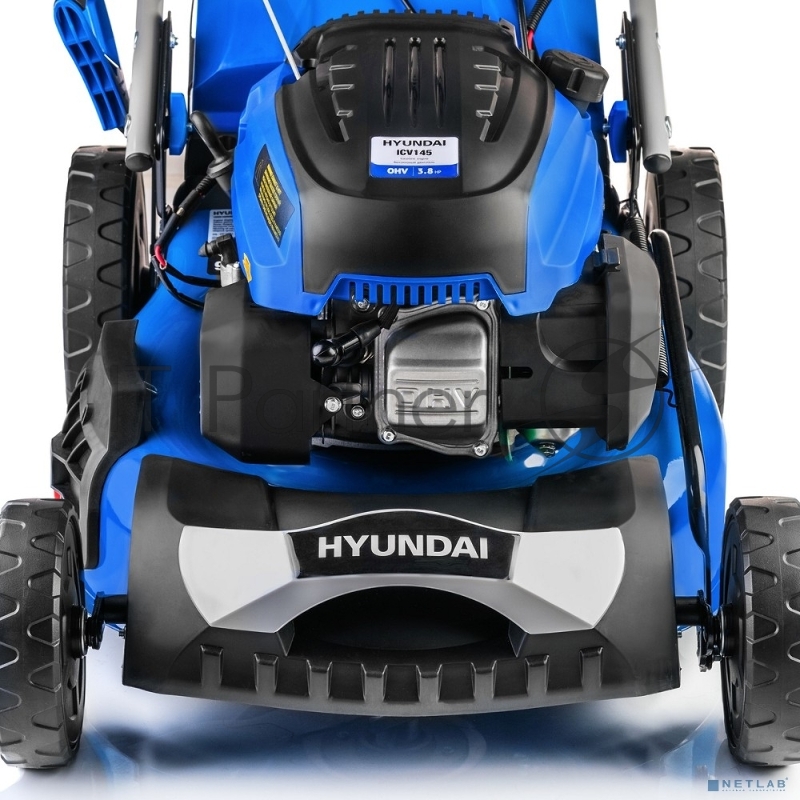 Бензиновая газонокосилка HYUNDAI [L 4610SE] {самоходная, Электрозапуск, двигатель Hyundai ICV145,4-х такт, 3.5 л.с./145 см3, Ширина среза 45,7 см, Высота среза 25-75 мм, 35 кг }