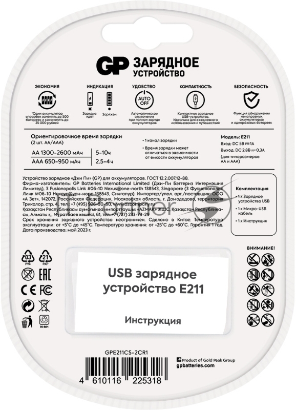 Зарядное устройство GP Е211CS-2CR1 AA/AAA NiMH блистер