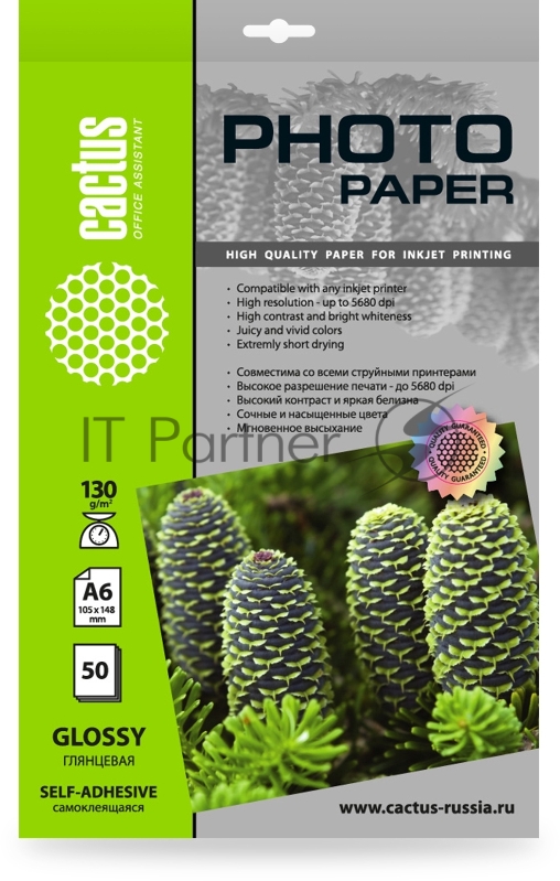 Фотобумага Cactus CS-GSA613050 A6/130г/м2/50л. глянцевое самоклей. для струйной печати