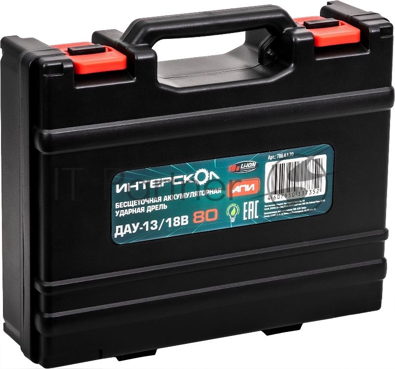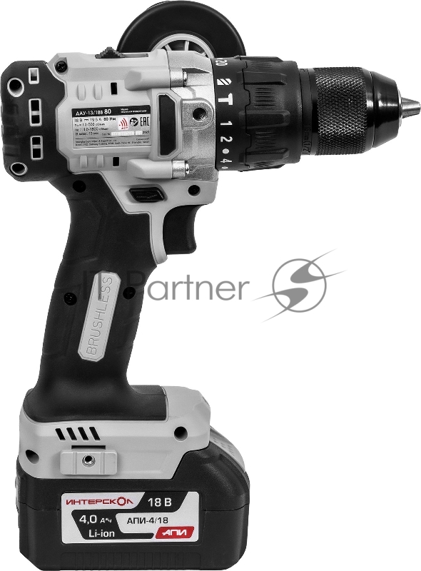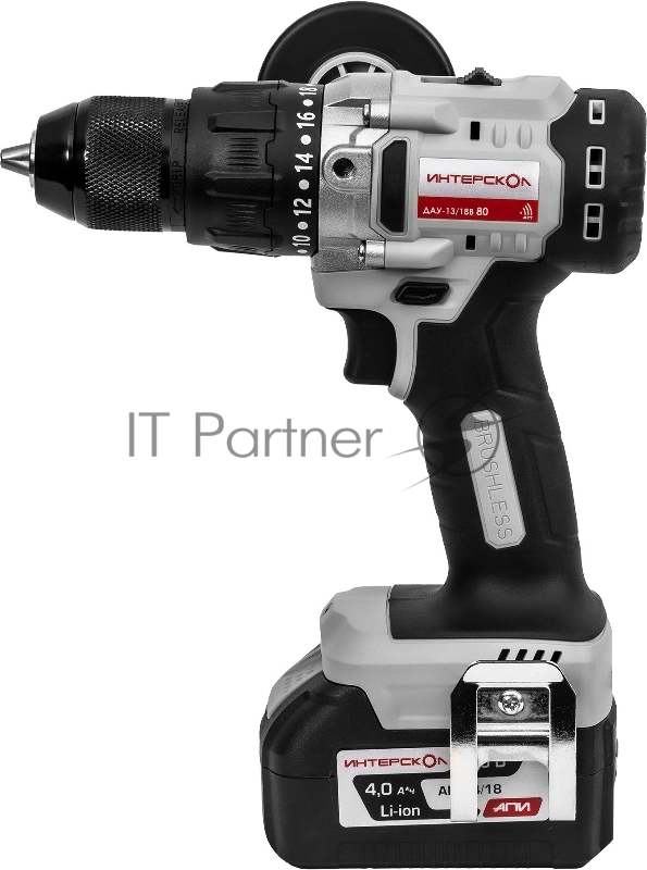 Бесщеточная аккумуляторная ударная дрель-шуруповерт ИНТЕРСКОЛ ДАУ-13/18В 80 ( АКБ 4 Ач и ЗУ, кейс)