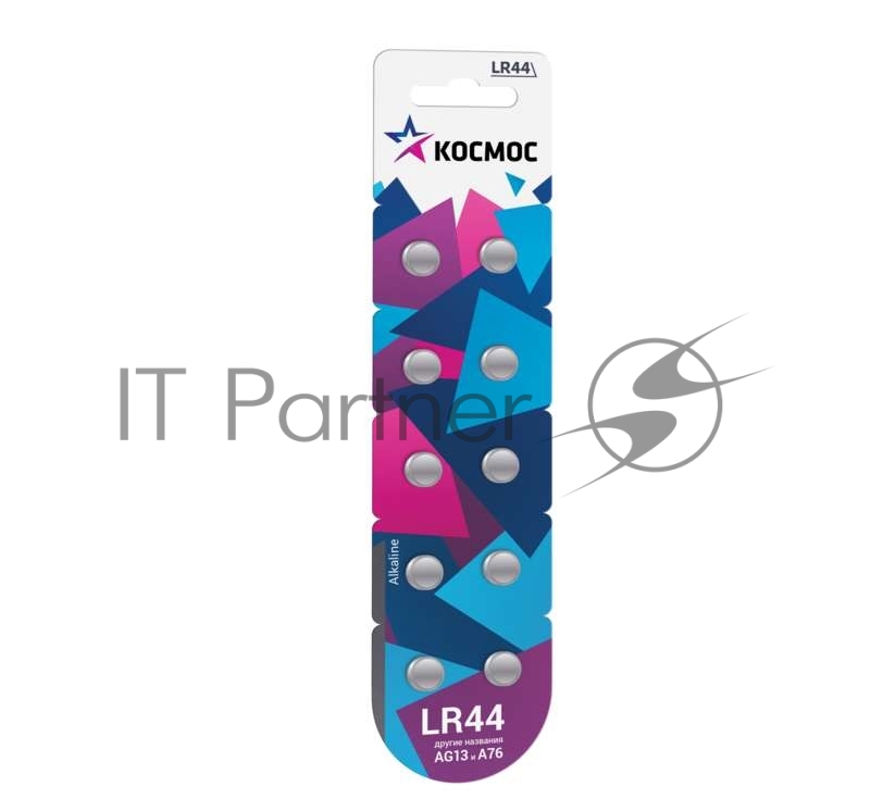 Элемент питания алкалиновый таблетка LR44/AG13 для часов (блист.10шт) КОСМОС KOCG13(LR44)10BL