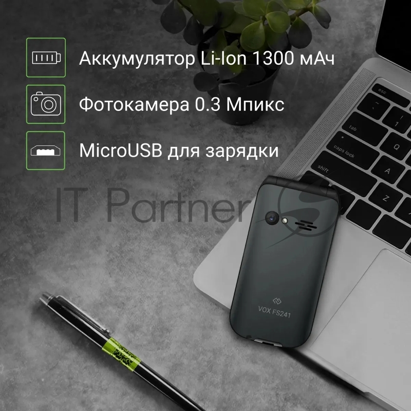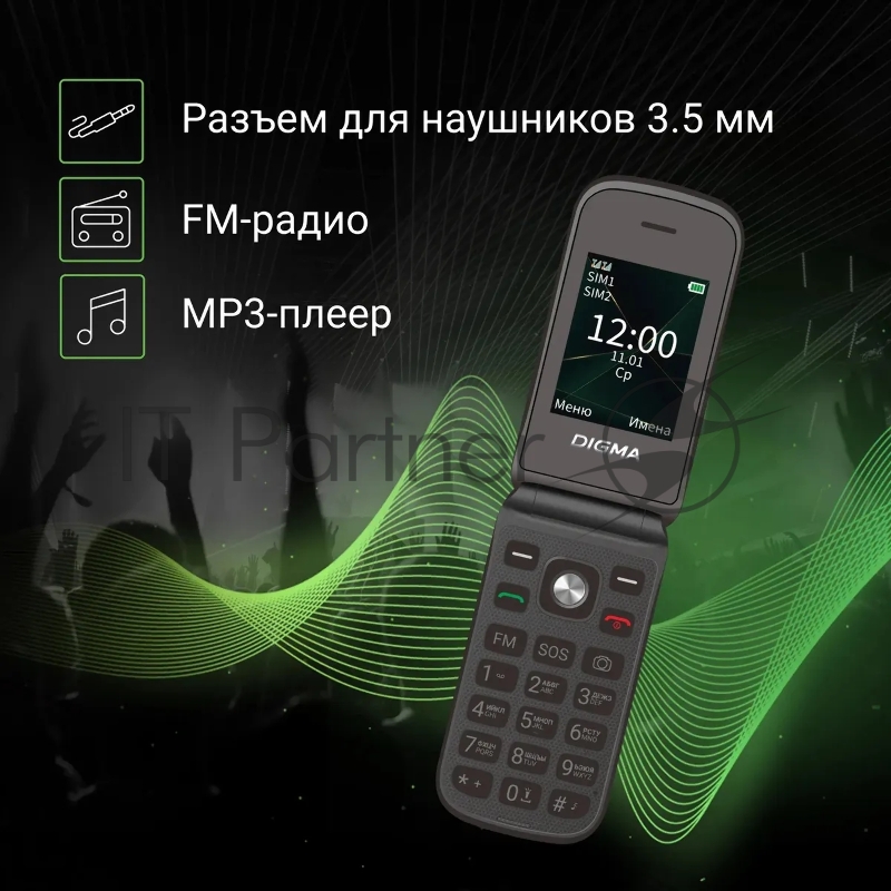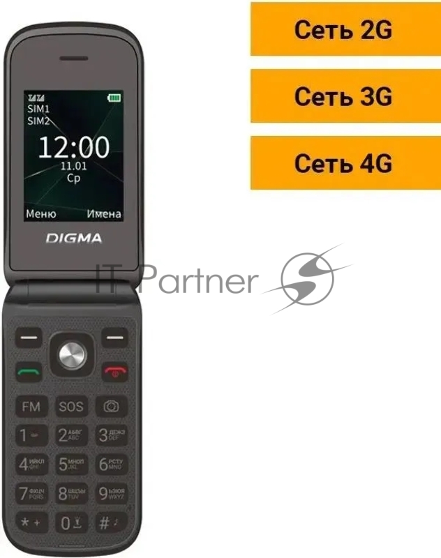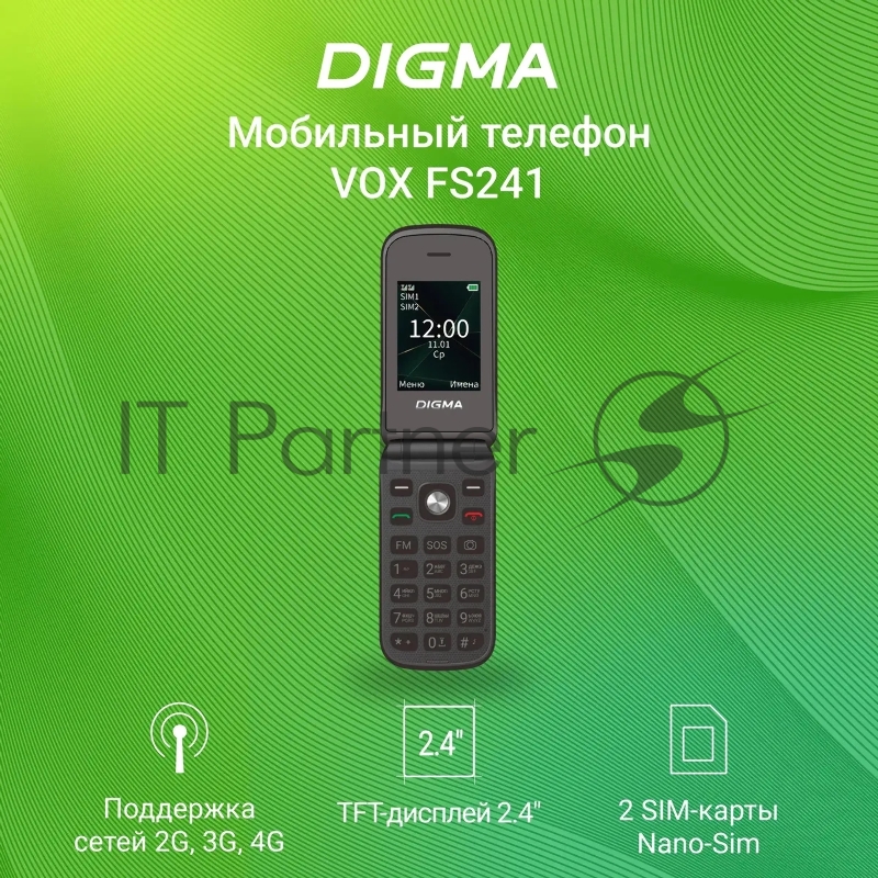 Мобильный телефон Digma VOX FS241 128Mb черный раскладной 3G 4G 2Sim 2.44 240x320 0.3Mpix GSM900/1800 FM microSD max128Gb