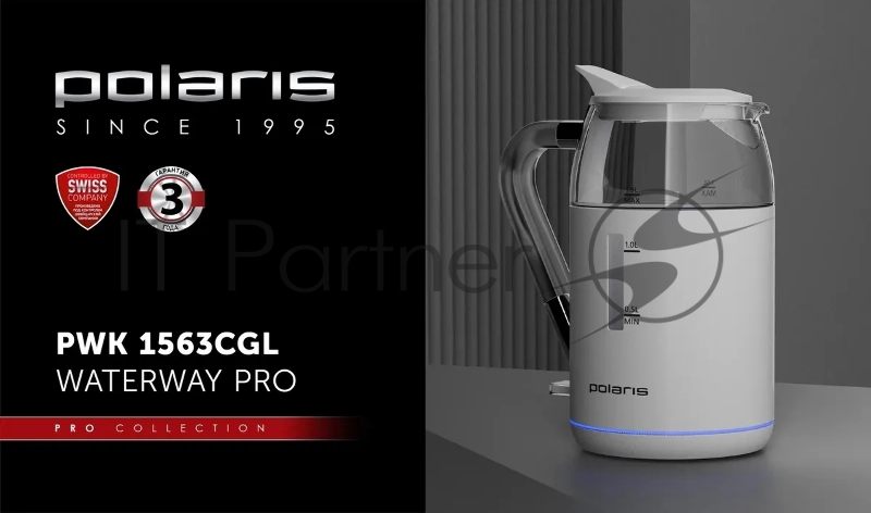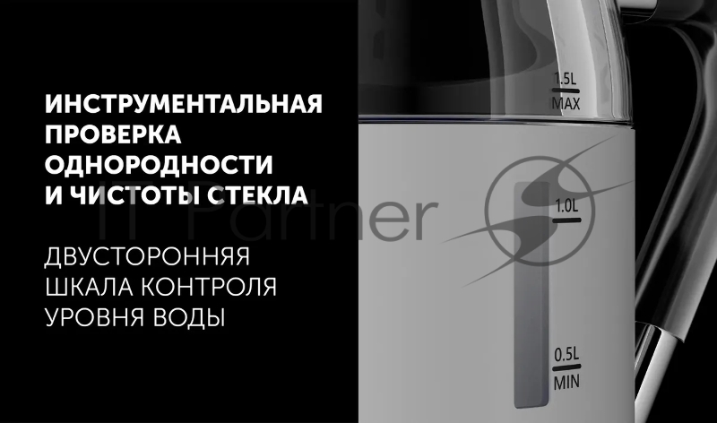 Чайник электрический Polaris PWK 1563CGL 1.5л. 2200Вт белый/прозрачный (корпус: стекло)