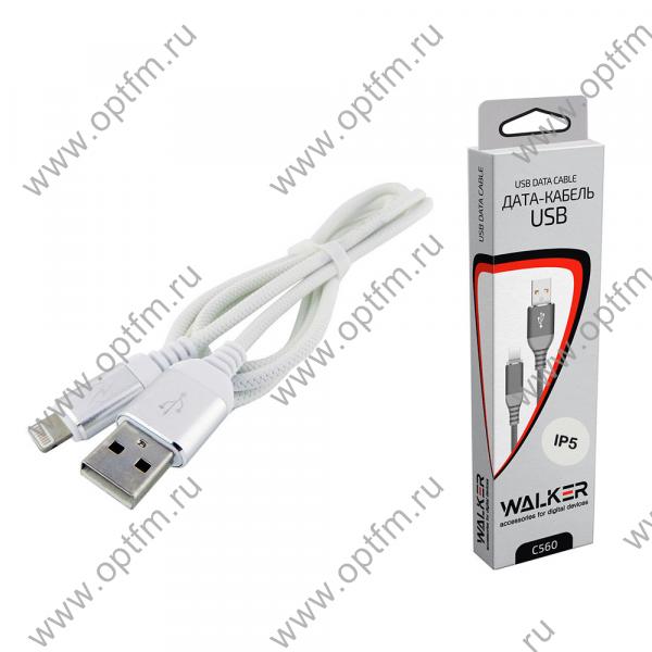 Кабель USB - Apple 8pin/lightning WALKER C560 прорезиненный, металл разъем, белый (1м)