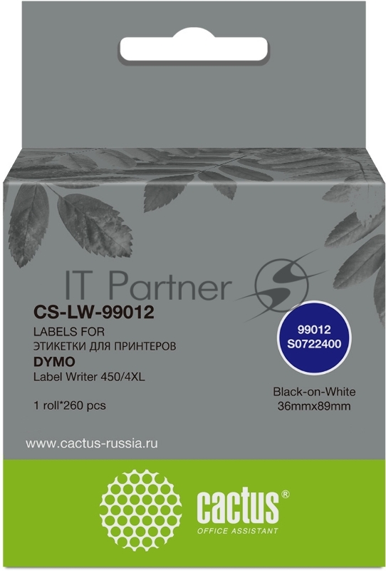Этикетки Cactus CS-LW-99012 сег.:89x36мм черный белый 260шт/рул Dymo Label Writer 450/4XL